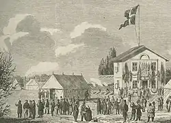 A social shooting event at Enighedsværn seen on an illustration from Illustreret Tidende