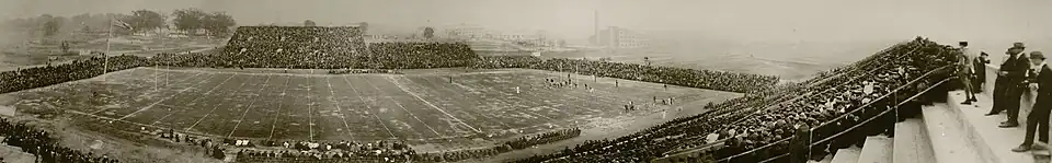 The stadium opened in 1924 and originally seated 12,000—the lower half of the current facility's grandstands on the east and west sidelines. In 1931, 10,000 seats were added to the existing grandstands.