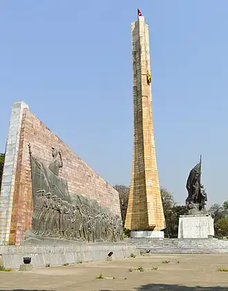 The Tiglachin Monument (Amharic: ትግላችን ሐውልት, lit. 'Our Struggle Monument'), also known as the Derg Monument (Amharic: ደርግ ሐውልት), is a memorial to Ethiopian and Cuban soldiers involved in the Ogaden War. It was built during the rule of Mengistu Haile Mariam and on Churchill Avenue in Addis Ababa, Ethiopia. The monument has a central statue, a 50 metre tall pillar, two wall reliefs on the sides and two squares where the portraits of Cuban soldiers are visible.[1] Some sculptures at the monument was given by the North Korean government in 1984, and was one of the project’s first monuments to be donated to Africa.[2]