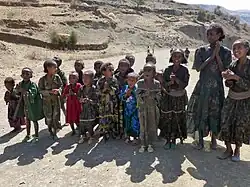 The Tigrayan people (Tigrinya: ተጋሩ, romanized: Təgaru) are a Semitic-speaking ethnic group indigenous to the Tigray Region of northern Ethiopia.[9][10][11] They speak Tigrinya, an Afroasiatic language belonging to the North Ethio-Semitic language descended from Geʽez, and written in the Geʽez script serves as the main and one of the five official languages of Ethiopia.[12] Tigrinya is also the main language of the Tigrinya people in central Eritrea, who share ethnic, linguistic, and religious ties with Tigrayans.[13]