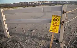 In January 2017, the Punta Banderas treatment plant, officially known as San Antonio de los Buenos plant, treated 15 million gallons of sewage a day to standards below U.S. secondary-level standards, pumping the water out into the Pacific Ocean at La Playa.[36] Yet, in 2017, it was found by Proyecto Fronterizo de Educacion Ambiental that the release from the plant exceeded Mexico's minimum federal standards on bacterial levels. While Tijuana's sewage capture rate of 90% exceeds the Mexican national average of 50%, Roberto Espinosa of CILA is quoted as saying "Tijuana is a complex city, and it has a sanitary system that has never kept pace with the increase in population,".[37] Due to the sewage in the river, it has been called "one of the most polluted waterways in the country".[38] This has led to a multitude of beach closures in Imperial Beach.[17] Each year the beach at Border Field State Park is closed for 233 days.[36]