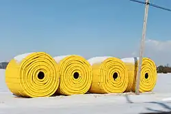 The ancient Roman authors Cato the Elder and Pliny the Elder described tile drainage systems in 200 BC and the first century AD, respectively. According to the Johnston Farm,[11] tile drainage was first introduced to the United States in 1838, when John Johnston used the practice from his native Scotland on his new farm in Seneca County, New York. Johnston laid 72 miles (116 km) of clay tile on 320 acres (1.3 km2). The effort increased his yield of wheat from 12 bushels per acre to 60. Johnston, the "father of tile drainage in America",[12] continued to advocate for tile drainage throughout his life, attributing his agricultural success to the formula "D, C, and D", i. e., dung, credit, and drainage.[13]