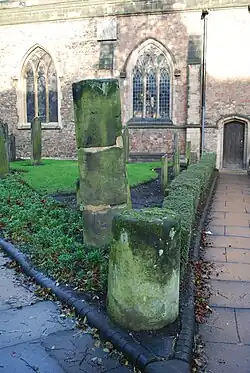 - Burial area near High Street with a crematorium urn and another crematorium urn from Aylestone Park.[5]