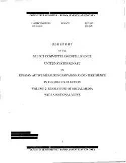 - DiResta, Renee; Shaffer, Kris; Ruppel, Becky; Sullivan, David; Matney, Robert; Fox, Ryan; Albright, Jonathan; Johnson, Ben (December 17, 2018). "The Tactics & Tropes of the Internet Research Agency" (PDF). New Knowledge – via Wikimedia Commons.