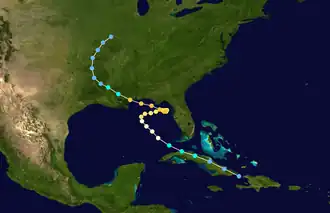 - ^ a b c d e f g h i j k l Preliminary Best Track – Hurricane Elena 28 August - 4 September 1985. National Hurricane Center (Report). Miami, Florida: National Oceanic and Atmospheric Administration. 1985. p. 4. Retrieved February 29, 2016.
