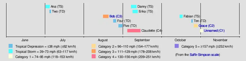 | Timeline of the 1991 Atlantic hurricane season | |||||