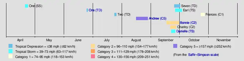 | Timeline of the 1992 Atlantic hurricane season | |||||