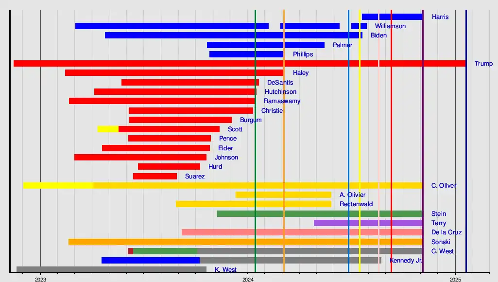 This is a timeline of major events leading up to, during, and after the 2024 United States presidential election, which was the first presidential election to be run with population data from the 2020 census. In addition to the dates mandated by the relevant federal laws such as those in the U.S. Constitution and the Electoral Count Act, several milestones have consistently been observed since the adoption of the conclusions of the 1971 McGovern–Fraser Commission.