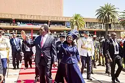 Hakainde Hichilema, a businessman and leader of the UPND, was elected President of Zambia on 12 August 2021 and inaugurated on 24 August 2021.[1] His presidency, as Zambia’s seventh, has focused on economic stabilization, investor re-engagement, infrastructure and energy development, and governance reforms.[2] Notable challenges during his tenure include managing the 2023–2024 cholera outbreak, responding to the worst drought in decades, and navigating political and diplomatic tensions following the death of former President Edgar Lungu in 2025.[3][4]