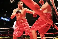 Ibragimov had an important year in 2010, winning four fights and obtaining high worldwide rating by the World Boxing Association. In February, he took the International Boxing Association Intercontinental heavyweight title by knocking out Awadh Tamim in three rounds.[6] In June, Ibragimov scored his most important career victory by outpointing former world heavyweight champion Oliver McCall over twelve rounds. The scores were 119–109, 117–111, and 117–111. The McCall victory earned Ibragimov the North American Boxing Association heavyweight title.[7] Ibragimov next defeated Gurcharan Singh and Luis Pineda.