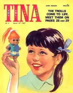 ![]() The cover of Tina, dated 18 March 1967, featuring a girl with a Troll doll. | |
