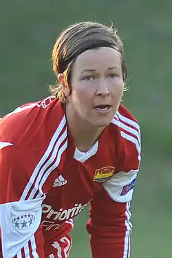 Tinja-Riikka Tellervo Korpela (born 5 May 1986) is a Finnish professional footballer who plays as a goalkeeper for Swiss Women's Super League club Servette.[2] She previously played for AS Roma in Serie A, Tottenham Hotspur in the FA WSL, Bayern Munich in the German Frauen-Bundesliga, Tyresö FF in Sweden's Damallsvenskan, LSK Kvinner and Kolbotn of Norway's Toppserien,[3] and FC Honka of Finland's Naisten Liiga.[4]