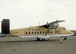 Founded on 20 January 1988, as a subsidiary of the Artac Freight and Shipping Group, Titan Airways was named after its first aircraft type, a Cessna 404 Titan, however, the airline's logo draws reference to Titan, a moon of Saturn. Their Cessna 404 aircraft were mainly used to carry car parts between various Ford and General Motors facilities in the UK and Europe, but it was also available for ad hoc freight charters and ultimately passenger charters. By 1993, the fleet had grown to include an Embraer Emb 110 Bandeirante, two Short SD 330s, and three SD 360s.[7]