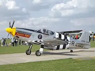 The Titan T-51 Mustang is a three-quarter scale replica of the P-51 Mustang that was designed by Titan Aircraft owner John Williams. It is a two-seat homebuilt aircraft with dual controls and tandem seats, and has remarkable performance given the small size of the engine.[1][2]