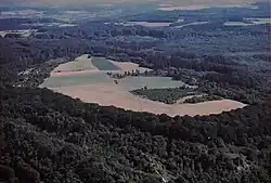 The Celts inhabited large areas of Europe from the Danube to the Rhine and Rhône during the 6th to 1st centuries BCE, a period sometimes referred to as La Tène after a site in Switzerland where continental Celtic remains were first discovered. It was around 100 BCE that the Treveri, one of the Celtic tribes, came into a period of prosperity. They constructed a number of settlements or oppida near the Moselle valley in what is now southern Luxembourg, western Germany and eastern France.[2] Titelberg was by far the largest of the Treveri settlements, no doubt as a result of its proximity to two of the most important Celtic roads, one from the south connecting the Rhone to the upper Moselle and the north, the other leading to Reims and the west. Another attraction were the iron ore which could be mined in the immediate vicinity and fertile lands.