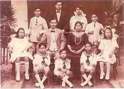 He was an owner of gold mines near French Guiana and often went to the other side of the border for shopping purposes; there he met his wife,[3] named Elisabeth Marie (Majotte) Tong Lee A Tai. She was of Vietnamese descent and was born in Paris in 1883. Her family was wealthy and was established within the French culture scene.[3] They married[3] on 15 September 1904.[3]" Elisabeth had a fascination for fashion, craftsmanship, and artistry and had much influence on the family crest. In Suriname she established a millinery shop, creating and selling stylish hats.