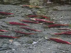 None of the traditional means of trapping salmon severely decreased the salmon population, and once the Tlingit harvested enough fish in a particular area they moved to other locations.[5] This left the remaining run to spawn and guarantee future harvests. This is in contrast to commercial fish traps used in Alaska in the nineteenth and twentieth centuries, which devastated runs, and in some cases completely destroyed spawning populations.