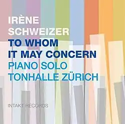 - ^ "To Whom It May Concern: Piano Solo Tonhalle Zürich by Irène Schweizer". Intakt Records / Bandcamp. Retrieved April 4, 2023.