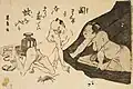 ![]() ![]() ![]() ![]() ![]() Clockwise from top left: Tsukiyo no Kama by Tsukioka Yoshitoshi (1886); An excerpt form Kokonobake no uchi by Toyokawa Yoshikuni (1825); Okame under mosquito netting by Keisai Eisen (c. 1810); Fukubiki subject by Keisai Eisen (c. 1810); Act VIII, from the series The Storehouse of Loyal Retainers by Utagawa Hiroshige I (1835) | |
