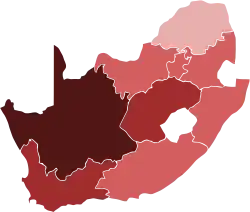 In 1996, the provinces with the highest prevalence of smoking were the Northern Cape (55%), Western Cape (48%), and North West (46%).[11]