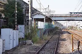 ![]() Disused track of the former Tobu Kumagaya Line at Kami-Kumagaya Station in November 2011 | |