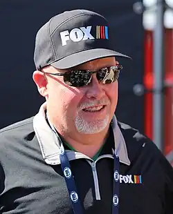 Todd Martin Bodine (born February 27, 1964) is an American former professional stock car racing driver. He last competed part-time in the NASCAR Camping World Truck Series, driving the No. 62 Toyota Tundra for Halmar Friesen Racing, and is currently a racing analyst for Fox NASCAR. Todd is the younger brother of former racers Geoffrey and Brett Bodine. Bodine is known for his bald head, which has given him the nickname "the Onion".[1]