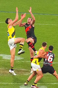 Todd Goldstein (born 1 July 1988) is an Australian rules footballer playing for the Essendon Football Club in the Australian Football League (AFL), having played the bulk of his career with the North Melbourne Football Club. He was drafted from the Oakleigh Chargers with the 37th selection in the 2006 AFL Draft. In 2015 he became the first-ever player to reach 1000 hitouts in a season. He surpassed Aaron Sandilands for the most hitouts in VFL/AFL history in Round 17, 2021.