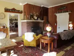 One of several ghosts said to haunt the premises is known as "Charley", an immigrant from mainland China smuggled into the US to work on the railroads in the early 1900s. Having jumped ship and swam ashore, Charley fled the smugglers pursuing him. The Kindreds are said to have offered Charley a hiding place behind the parlor fireplace.[19] But while waiting for the coast to clear, Charley died of suffocation and roams the hallways and sometimes spins dinner plates at the restaurant.[20]