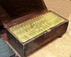 The establishment of Tokugawa coinage followed a period in which Japan was dependent on Chinese bronze coins for its currency.[2] Tokugawa coinage lasted for more than two centuries, and ended with the events of the Boshin war and the establishment of the Meiji restoration. However, there is an ongoing discussion of the entity of the precious metal coins. It was not a part of Tokugawa bakufu which issued gold and silver coins, but private organizations owned by merchants.[3]