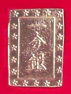 The Ichibuban (一分判) could be either made of silver or gold, in which case it was a quarter of a Koban. The gold Ichibuban of 1714 (佐渡一分判金) had a weight of 4.5 g, with 85.6% of gold and 14.2% of silver. The silver Ichibuban from 1837 to 1854 (Tenpō Ichibugin, 天保一分銀, "Old Ichibuban") weighed 8.66 g, with an alloy of 0.21% gold and 98.86% silver.[7]