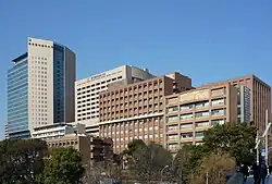 Yushima (湯島, Yushima) Campus was the main campus located in Bunkyō, close to Ochanomizu Station, which contains the main university hospital buildings and research facilities including the 126m-tall M&D tower. The campus was close to Yushima Tenjin, from which the university plum blossom symbol (five petals) was derived.[6]