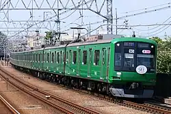 Toyoko Line eight-car set 5122 received an all-over green vinyl wrapping livery in September 2017 to mark the 90th anniversary of the opening of the Toyoko Line and recreating the appearance of the original 5000 series EMUs nicknamed "green frog" which formerly operated on the line.[6] It was originally scheduled to carry this livery until the end of August 2018,[6] but this was later extended to August 2019[7] before Tokyu announced in September 2019 that the livery would be carried indefinitely.[8][9]
