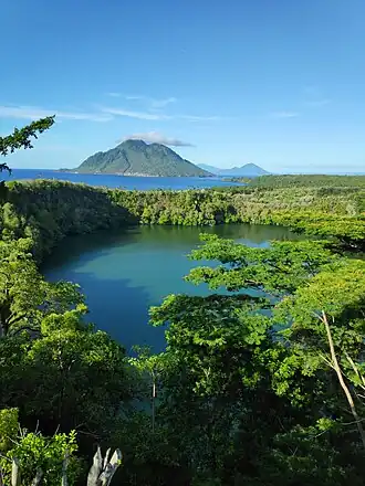 Tolire Lake is located in northwest Ternate, North Maluku, Indonesia.[1] The lake is bordered by sheer cliffs.