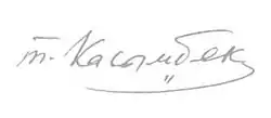 Tölögön Kasymbek (Kyrgyz: Төлөгөн Касымбек) (also, Kasymbekov, also transliterated from Russian as Tolegen Kassymbekov[3]) (15 January 1931[4] – 16 June 2011) was a Kyrgyz author who mostly wrote historical novels.