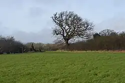 Mammals on the site include woodmice, field voles and roe deer.[3] The wildlife has increased considerably over the years, it is regularly visited by little white egrets, herons love the water and the waterlogged field for frogs and lizards. There are several pairs of Kestrels, Sparrow hawks can be seen working the trees. A pair of Buzzards, Red Kites have been seen on a regular basis. A trip over the fields late in the evening will reward with several Tawny owls calling to each other, and numerous bats flying around. In 2017 a Jersey Tiger Moth was recorded resting on a bush. There is a very large array of Butterflies and moths. There is access from Kingston Road near Jubilee Way.