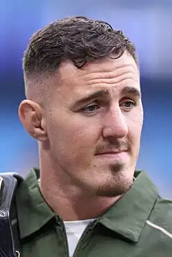 Aspinall was born to parents Tracey and Andy and was raised in Atherton, Greater Manchester.[52] He is married to his Polish wife Justyna with three sons, two of which are twins.[53][54] Aspinall can speak some Polish and says he feels very close to Poland because of his wife and half Polish children.[55]