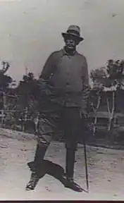 In 1899 he transferred to South Africa to serve in the Second Boer War. Attached to the Imperial Light Horse, he took part in the relief of Ladysmith, and received the rank of captain supernumerary to the establishment on 5 April 1900. For a few months in 1901 he was in command of two West Australian Mounted infantry contingents, and was severely wounded.[7][1][6] He was confirmed as captain in the Royal Artillery on 8 January 1902,[8] and served in South Africa till the end of the war in June 1902, after which he left Cape Town in the SS Plassy in August, returning to Southampton the following month.[9] For his war service, he was mentioned in dispatches, including the final despatch by Lord Kitchener dated 23 June 1902,[10] and received a brevet promotion as major on 22 August 1902.[11]