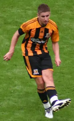 He played for Hull against Tottenham Hotspur in the final of the pre-season Premier League Asia Trophy in Beijing on 31 July 2009.[12] His first-team debut came against Southend United in the League Cup on 25 August 2009, when he opened the scoring with a curling long-range effort as Hull won 3–1.[13][14] He went on to make his Premier League debut on 30 January 2010 in a 2–2 draw against Wolverhampton Wanderers.[15] On 7 March 2010, Cairney scored his first league goal for Hull in a 5–1 defeat against Everton, an impressive volley from outside the area.[16] Cairney signed a new three-year contract with the club on 31 March 2010.[17][18] Having been given a first team opportunity later in the season,[19] he made the total of 14 appearances and scoring once for the side.