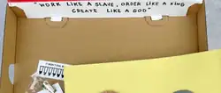 In 2012, Sachs partnered with Nike to release the Mars Yard sneaker. Ten years later, Sachs and Nike released a new sneaker called the General Purpose Shoe.[12] Nike quietly altered the packaging for a sneaker collaboration with artist Tom Sachs in 2017, scrubbing the box of his NikeCraft Mars Yard 2.0 shoe of the phrase "work like a slave" before the project launched that year, sources tell Complex. The shoes nearly made it to retail with the phrase on the inside of the lid of the box before Nike moved to have the text removed, sources say.[13]