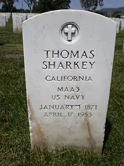 After retiring from boxing, Sharkey operated a saloon and worked as a night watchman and security guard. In 1938, he entered Laguna Honda Hospital in San Francisco, according to newspaper accounts, desperately ill. He died there in 1953 and is buried at Golden Gate National Cemetery in San Bruno, California.[17]