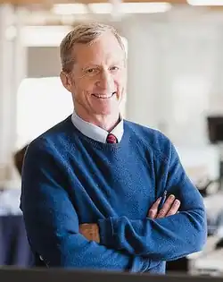 Thomas Fahr Steyer (/ˈstaɪ.ər/; born June 27, 1957) is an American climate investor, businessman, hedge fund manager, philanthropist, environmentalist, political candidate and liberal activist.[1][2] Steyer is the founder and former co-senior-managing-partner of Farallon Capital, and the co-founder of OneCalifornia Bank, which became (through merger) Beneficial State Bank, an Oakland-based community development bank.[1] Farallon Capital manages $20 billion in capital for institutions and high-net-worth individuals. The firm's institutional investors include college endowments and foundations.[1] Steyer served on the board of trustees at Stanford University from 2007 to 2017.[3][4] He was formerly a partner and member of the executive committee at Hellman & Friedman, a San Francisco–based private equity firm.
