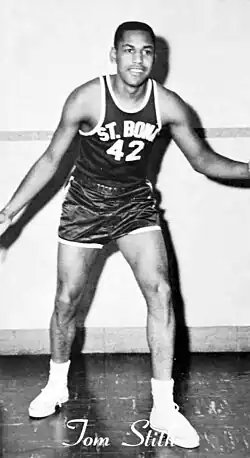 Stith attended St. Francis Preparatory School in Brooklyn and committed to St. Bonaventure University, where he and older brother Sam formed a formidable 1-2 punch. The Stith brothers posted a 52.0 points per game combined scoring average for the 1959–1960 season. Tom Stith became St. Bonaventure's first consensus All-American in 1960 and 1961. Stith left St. Bonaventure as the school's all-time leading scorer, ending his career with 2,052 points. Stith finished second in the nation in scoring to Oscar Robertson in 1960, averaging 31.5 points per game, and he then finished third in 1961 with 29.6 points per game.[1]