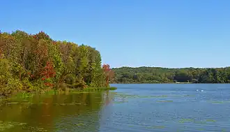 Tomahawk Lake is a lake located in the town of Blooming Grove, New York, United States. It is a reservoir, created in 1929 by damming Cromline Creek,[2] which converges with Otter Kill elsewhere in the town to form Moodna Creek, a tributary of the Hudson River. It is privately owned, and regulated by the homeowners' association and access both as a water supply and recreational resource is restricted to its members. Two roads cross the lake, and public fishing access is limited to the lake up to 50 ft from the centerline of these roads. Limited parking is available on Hulsetown Road South of the junction with Cherry Hill Road. There is no bow-fishing in Tomahawk lake because it is illegal to discharge a bow from a NY road.