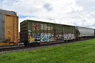 ![]() Boxcar from when the railroad was still called the Marinette, Tomahawk, and Western | |
