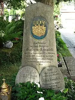 It is descended from Giuseppe Tomaselli (1758–1836),[2] who was born in Rovereto in the Prince-Bishopric of Trent, which later in his lifetime belonged to Austria and which is now in Italy. After studying music in Milan, he immigrated to Salzburg in 1781 to become a noted singer in court chapel of Hieronymus of Colloredo, Prince-Bishop of Salzburg. After, he became music teacher in Salzburg and in Vienna. Giuseppe (Joseph) Tomaselli was married to Antonia Honikel (1775–1846), a native of Landersdorf. They were the parents of Franz Tomaselli (1801–1846), who was a noted actor and comedian in Vienna; of Karl Tomaselli (1809–1887), who founded a famous coffee shop in Salzburg which still exists;[3] of Ignaz Tomaselli (1812–1862), who was a prominent comedian and singer; and of Katharina Tomaselli (1811–1857), who was an opera singer and who was the mother of the actress and theatre director Josefine Gallmeyer (1838–1884).[4][5]