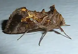 Chrysodeixis chalcites, the tomato looper or golden twin-spot moth, is a moth of the family Noctuidae, subfamily Plusiinae. It mainly lives in southern Europe, the Levant and tropical Africa, but can be seen migrating across much of Europe. In 2013, it was spotted in Canada.[1] It is an important horticultural pest in New Zealand.[2]