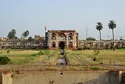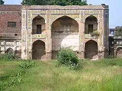 The southern gate serves as the primary entrance in the tomb's garden complex.[2] It is a double storied building built of brick that is roughly square in shape. The southern façade of the gateway was covered with red sandstone and white marble, while the other three sides featured decorated plasterwork.[2]