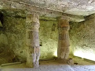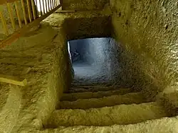 In later times, his tomb was turned into a Coptic place of worship for a while[7] and suffered damage. A deep font for total immersion was placed before the apse.[6]