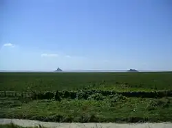 Tombelaine (French pronunciation: [tɔ̃blɛn]) is a small tidal island off the coast of Normandy in France. It lies a few kilometres north of Mont Saint-Michel. At low tide, the island can be reached on foot (with a guide) from the coast of Cotentin, 3.5 kilometres (2.2 miles) to the northeast, and from Mont Saint-Michel.[1]