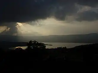 ![]() Sunrays over Tominé Reservoir seen from Guatavita | |